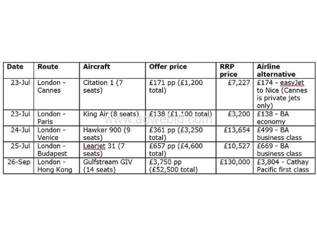'Long haul empty legs are also available further in advance that can beat first class fares, including London to Hong Kong in a Gulfstream GIV for £3,750 per person.'